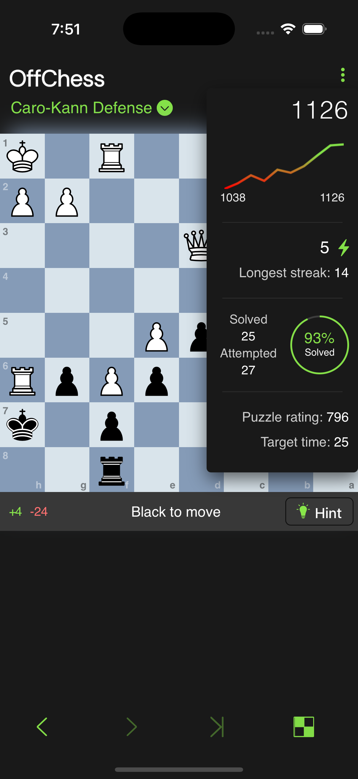 Every chess puzzle on OffChess is rated, you gain and lose points based on your and puzzle's rating.
